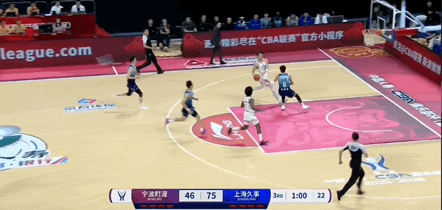 洛夫顿打手犯规,宁鸿宇三罚三中。随后古德温带球,从左侧弧顶处传向正面弧顶时,被宁鸿宇抢断,直接反击暴扣,宁鸿宇连得5分,帮助宁波男篮将分差追到个位数,上海男篮叫停比赛。