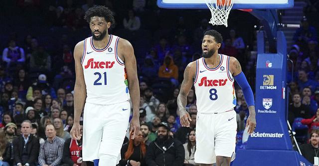 赛季至今,恩比德因伤仅出战7场比赛,场均砍下19.4分5.3篮板3.1助攻;乔治仅出战6场比赛,场均斩获13.5分4.8篮板2.8助攻。(NBA官网)