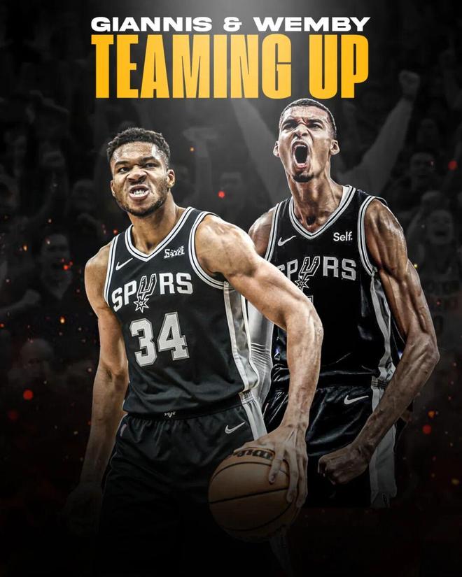 如果马刺真的得到了字母哥,那他们可以组成文班亚马和字母哥——可能是史上最恐怖的外星人组合,重点是,因为文班亚马具备的投射能力,这两位攻防两端还能兼容。