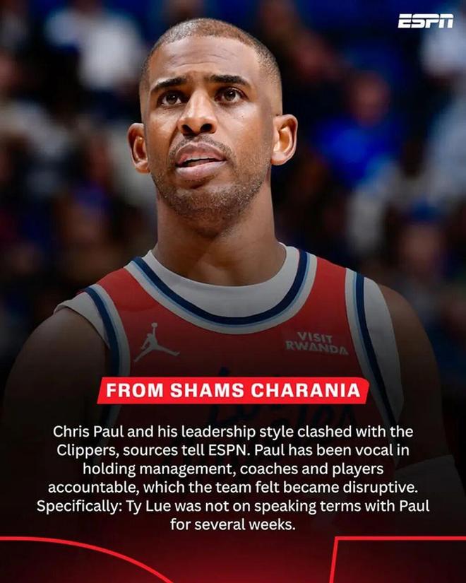 - 克里斯·保罗被快船扫地出门,“偏执”领袖让更衣室信任最终破裂