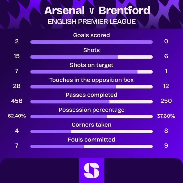 英超联赛第14轮,榜首阿森纳坐镇主场迎战布伦特福德。第11分钟,梅里诺接本·怀特传中头球破门先拔头筹。此后阿森纳发动猛烈的攻势,但均被凯莱赫化解。比赛最后时刻,萨卡锁定胜局,阿森纳2比0击败布伦特福德,继续以5分优势领跑积分榜。