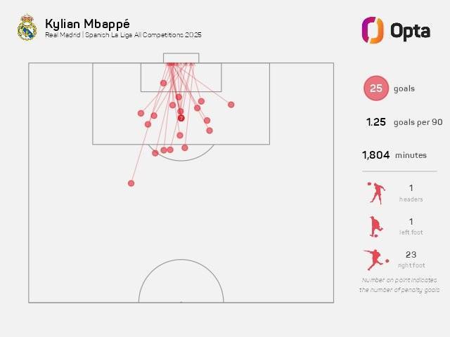 - 姆巴佩本赛季西甲已参与20球,超过15支球队的进球数
