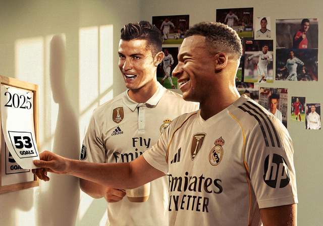 整个2025年,姆巴佩代表皇马出场55次,打进55球,场均整整1球。皇马历史上,自然年进球超过55个,仅有2名球员、C罗、姆巴佩。这其中,C罗在2013年打进59球,2012年攻入58球,2014年打进56球,1人占据皇马自然年进球榜的前3名。